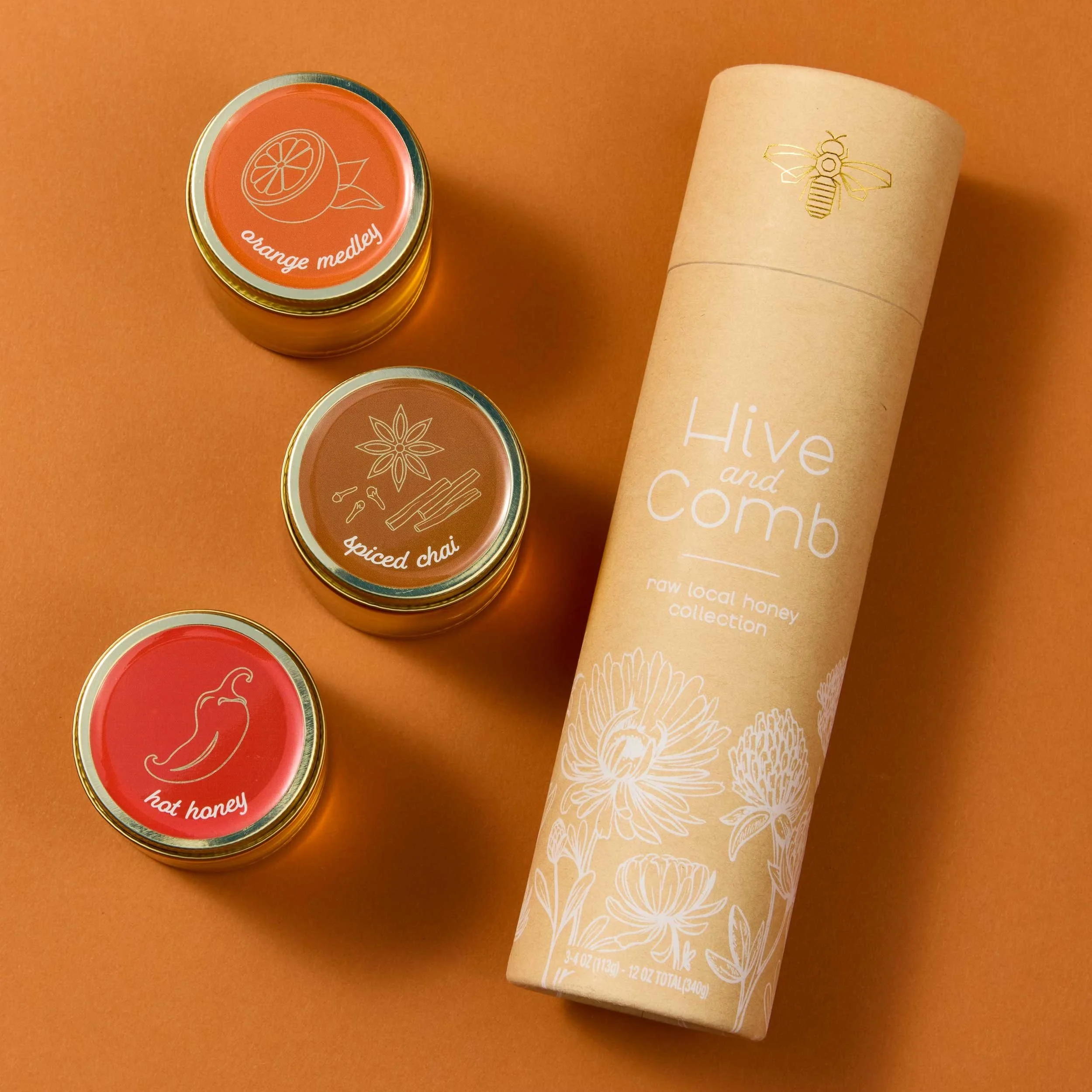 Gift Sampler Set: Raw Local Honey • Orange Medley • Spiced Chai (Three, 4 oz Jars)